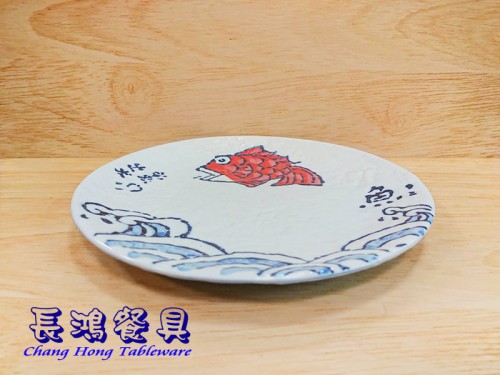 濤紅魚10"石紋淺式盤 011MF101