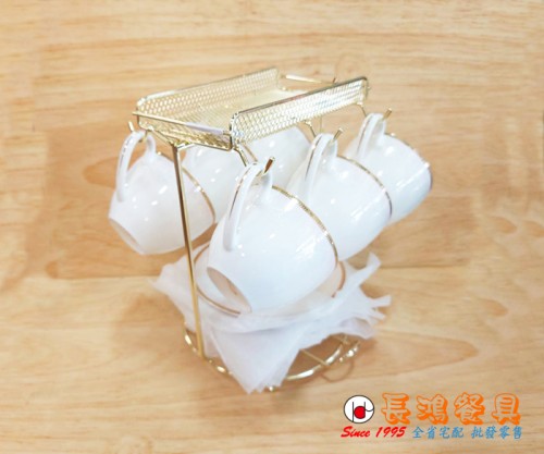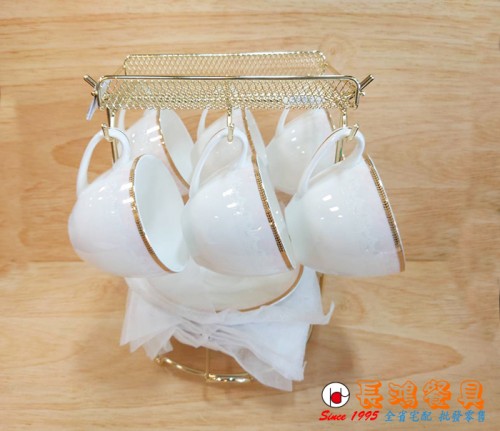 馨粉佳人骨瓷六杯組附架 237H9268-02