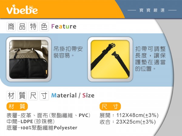 ※ 請勿使用漂白劑或酒精之藥劑清洗汽車座椅保護墊。