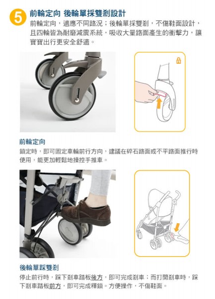 6.前輪定向,後輪一踩雙剎車