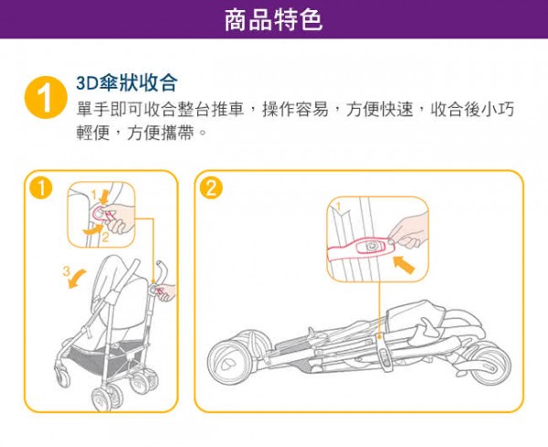 2.3D傘狀收合,單手即可收起整台手推車