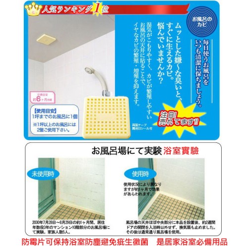 使用前,請先將浴室霉菌清除,打掃乾淨後,將本品貼於天花板中央。