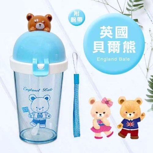 英國貝爾熊 England Bale 兒童吸管水壺520ml(附腕帶)