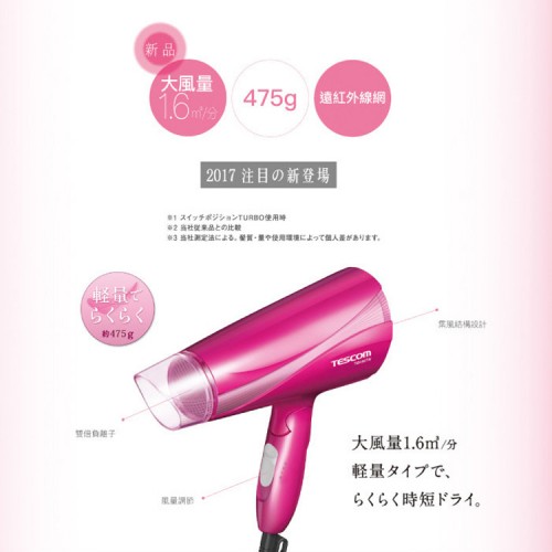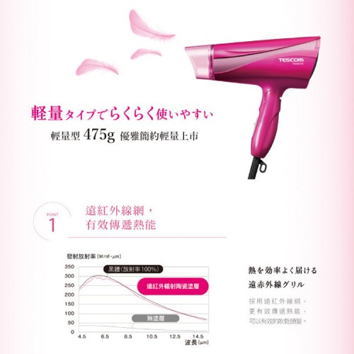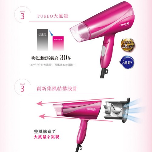日本TESCOM專業型大風量負遠紅外線負離子吹風機(TID450TW)