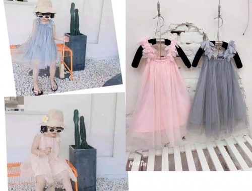 花瓣肩帶飄逸洋裝(粉)