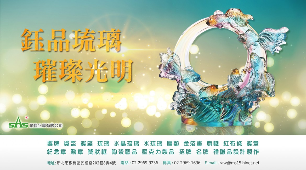 獎牌、獎盃、獎座、琉璃、水晶琉璃、水琉璃、鈺品琉璃、壓克力、壓克力獎牌、匾額、木匾、框畫、金箔畫、旗幟、紅布條、獎章、紀念章、勳章、獎狀、紀念品、禮品贈品。 電話:02-2969-9236 / 傳真:02-2969-1696 / E-mail:raw@ms15.hinet.net
