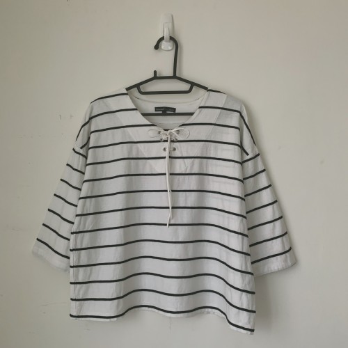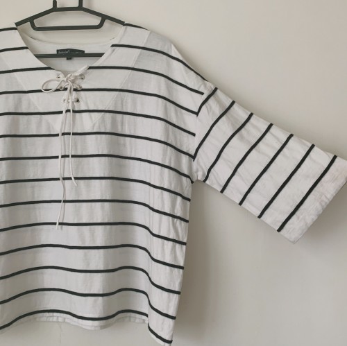 HOT WIND 條紋七分袖蝴蝶結可愛上衣