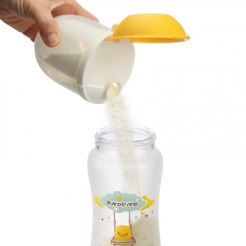 漏斗式出粉口,適用各式奶瓶口徑,奶粉不易灑落