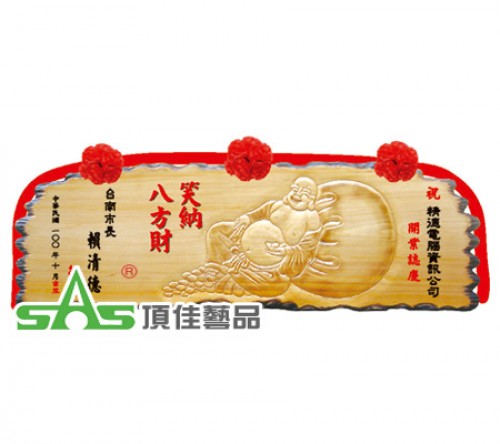 笑納八方財 立體陽彫木匾