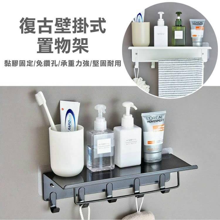 復古壁掛式置物架(黑色)