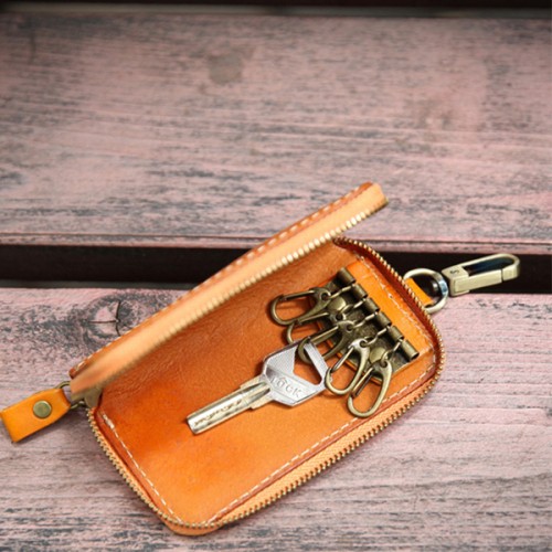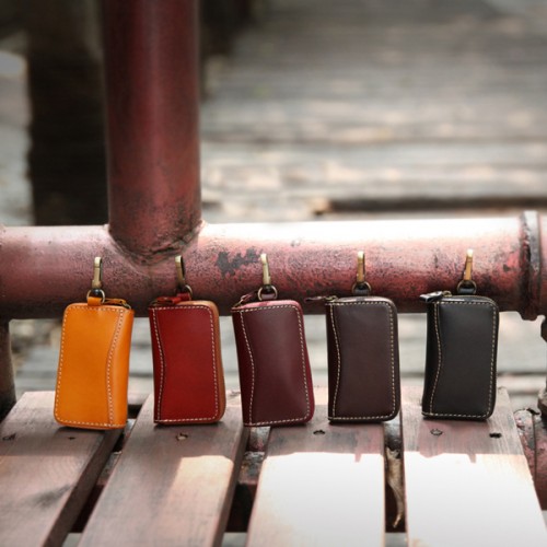 【Solomon 原創設計皮件】植鞣牛皮拉鍊鑰匙包