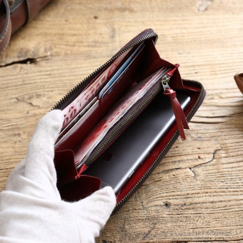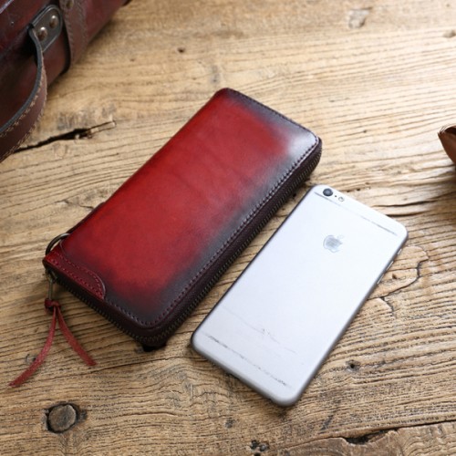 【Solomon 原創設計皮件】植鞣革漸層復古長夾 全真皮拉鍊長夾 有拉鍊零錢袋