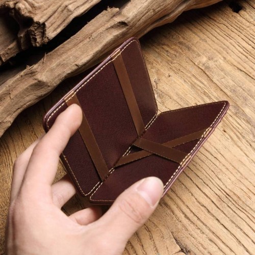 【Solomon 原創設計皮件】牛皮魔術鈔票卡夾 全真皮悠遊卡信用卡 攜帶方便