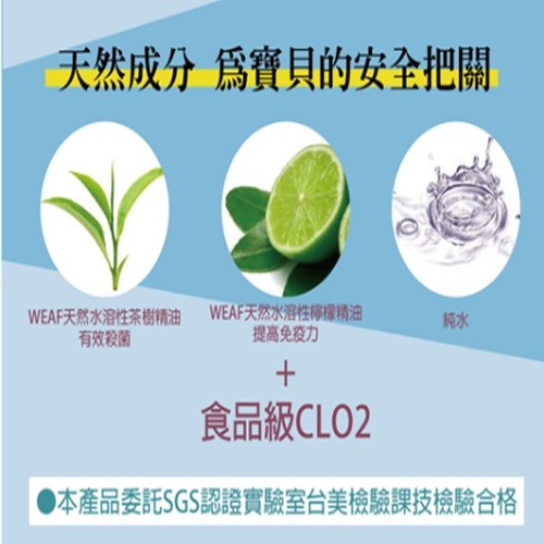 成分:WEAF茶樹、檸檬、香茅精油、食品級CLO2(二氧化氯)、純水。